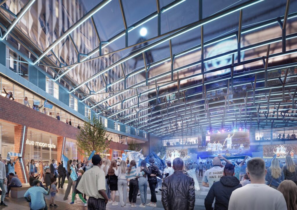 In a statement when plans were submitted, Manchester City’s managing director of operations Danny Wilson said, “Over several months we have been developing concepts and designs for a best-in-class fan experience and year-round entertainment and leisure destination at the Etihad Stadium.