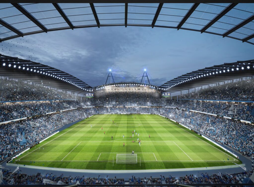 Among the proposals submitted, Manchester City have indicated a desire to construct ‘several connected all-weather facilities’, fully integrated into the Etihad Stadium itself, and centred around an expanded North Stand to take the capacity of the arena to over 60,000.